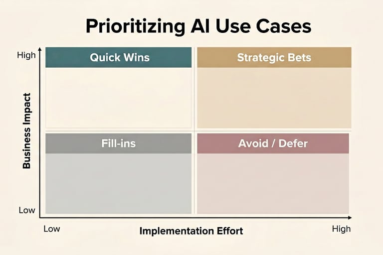 Many teams prioritize the feature that sounds the most advanced or impressive. But the smarter path is to prioritize the use case that creates measurable business value fastest.